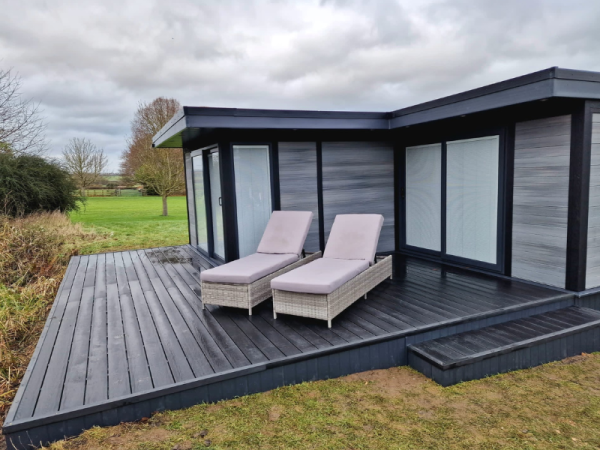 Our decking is made from the same materials as your Garden Studios blending in nicely, this also means that your decking, just like your garden room is low maintenance and will withstand all weather conditions.
